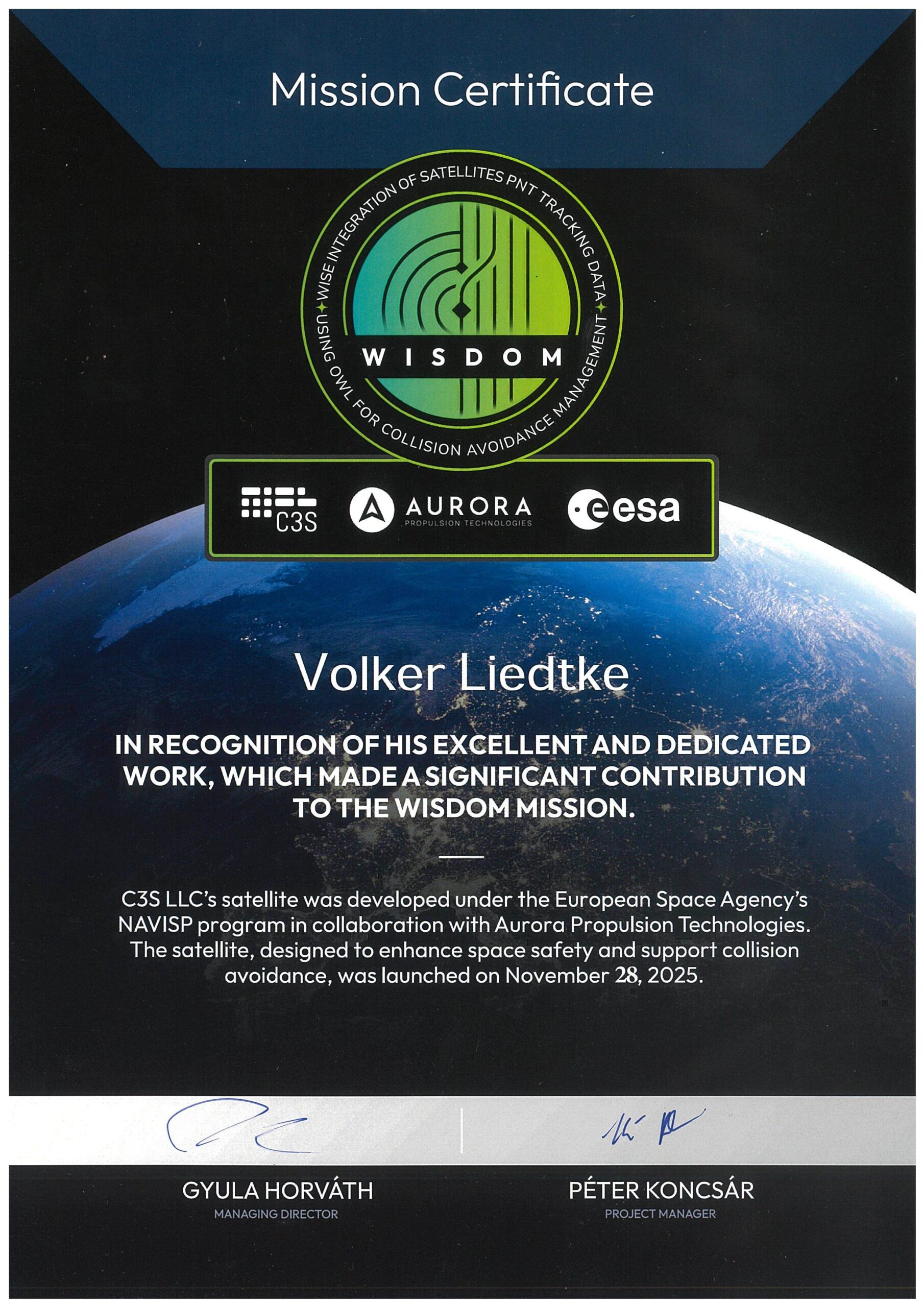Certificates AAC Research Certificates and Awards // Certificates and Awards ISO 9001 Certificate State-certified engineering firm BGF quality seal WISDOM Mission Certificate MAUVE Mission Certificate IMWF Award Admatis Certificate VIREO Cubesat Mission Certificate ISO 9001 Certificate Chemie-Report // Certificates and Awards ISO 9001 Certificate State-certified engineering firm BGF quality seal IMWF Award Admatis Certificate VIREO Cubesat Mission Certificate ISO 9001 Certificate Chemie-Report